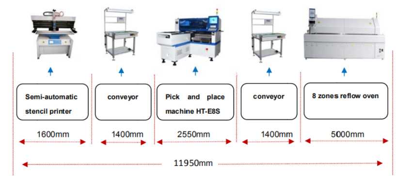 HT-E8S-1200 SMT pick and place machine can be flexibly wired, semi-automatic production line is the most common one, as well as combined wiring, production of lens lines and so on.