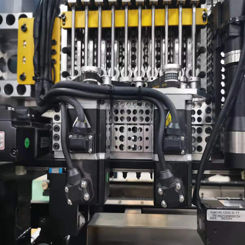 2. The X axis uses high-end magnetic linear motor, which has higher accuracy and faster speed. Each head of Z axis is independently controlled by servo motor to ensure accurate mounting.