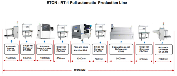 the full-automatic production line can save labor and improve production efficiency. the machine includes: loader, full-automatic stencil printer, conveyor, pick and place machine, reflow oven and un-loader.