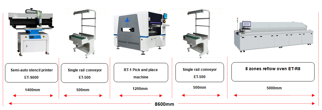 Reflow oven: Melt the solder paste and fix it to the mounting element.