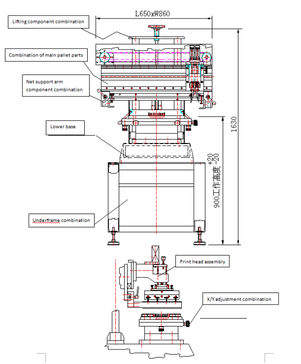 The mesh support arm can be adjusted left and right separately, suitable for 550~650mm stencil.