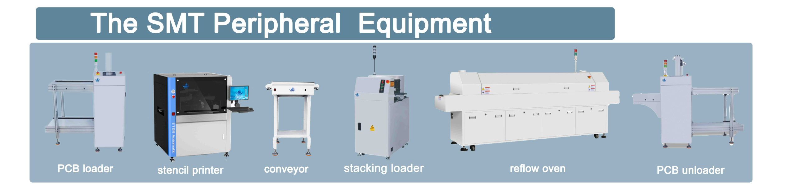 loader, stencil printer, conveyor, reflow oven unloader, translational conveyor and so on.