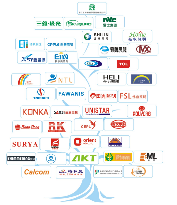 SURYA, POLYCAB, FIEM, RK, GK, TECHNO LED, CALCOM, ACK , KENDAL, RangDong, UNISTAR, and so on.