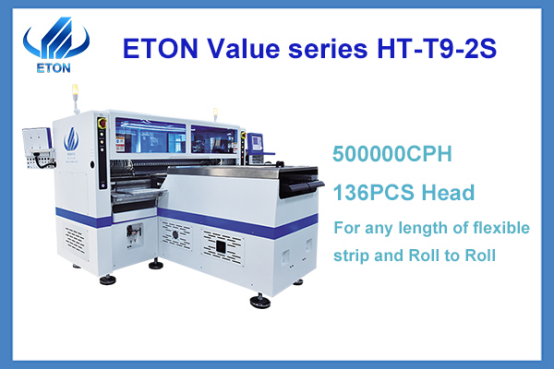 1.Double rail and four groups of placement heads. capacity can reach 500000CPH 2.Avaible for 5m,50m or any length of flexible strip and roll to roll. 3.Group to take and group to mount. 4.PCB clamping: vacuum adsorption, cylinder splint, adjustable track width. 5.Conponents range: LED 3014/3020/2835/5050 and resistor,capacitor,bridge rectifiers. 6.136PCS head and 136PCS feeders station.