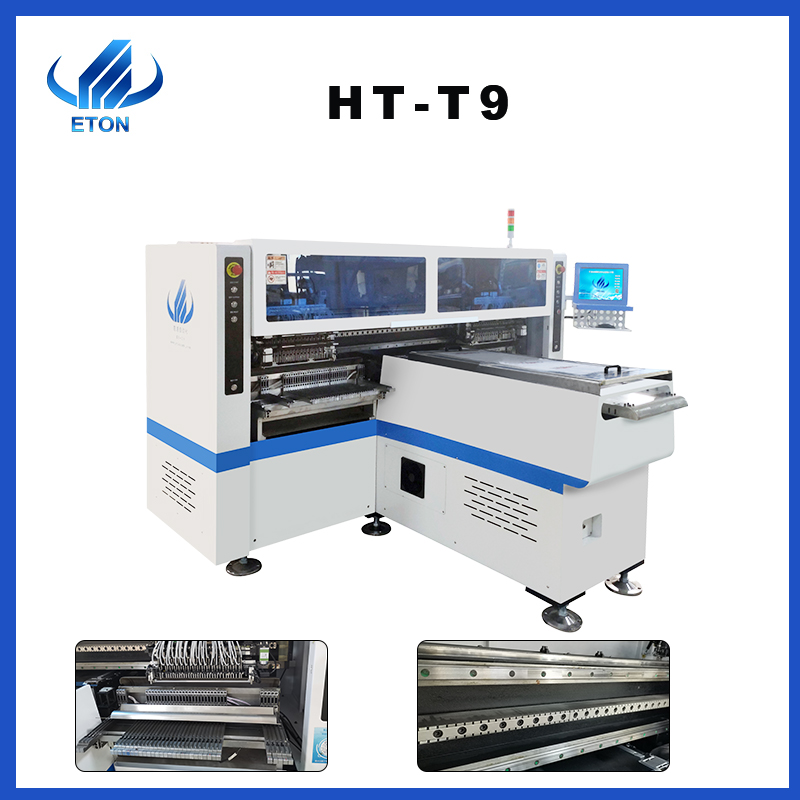 LED soft light belt production machine: many of our machines can produce soft light belts, such as T9, T9 can produce soft light belts of any length of 50 meters, 100 meters, and 200 meters. T9 has 68 Feida and 68 suction nozzles, with a capacity of 250K. At the same time, it produces four different materials without affecting the high production capacity. There are four modules of double film heads and 17 suction nozzles in each group. It has a correction function and can be mounted with RGB.