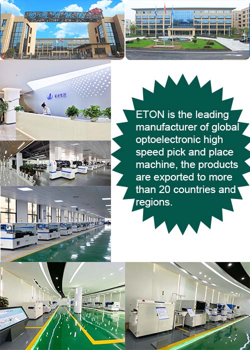 Shenzhen ETON Automatic Equipment Co.,Ltd. was founded in 2011. It is a manufacturing and process solution provider focusing on R&D, production, sales and service of SMT high-speed pick and place machines and SMT peripheral automation equipment.