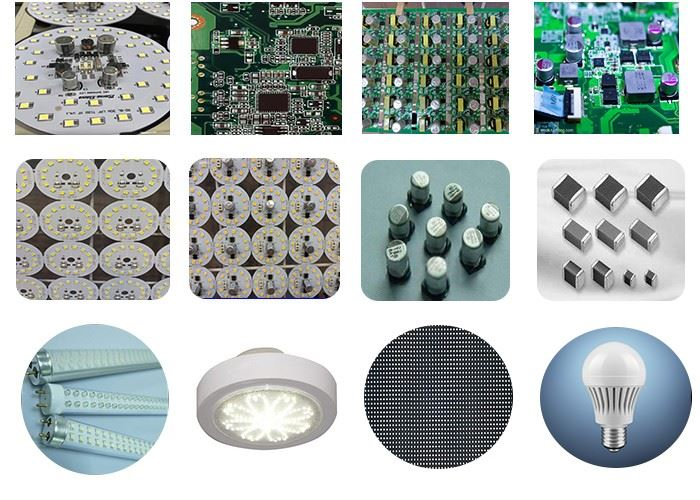 Our machine can mount LED chip, resistor, capacitor, IC, shaped components,etc.