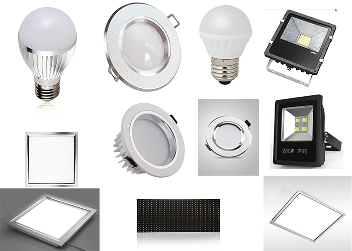 LED , capacitors, resistors, IC,shaped components, etc. |