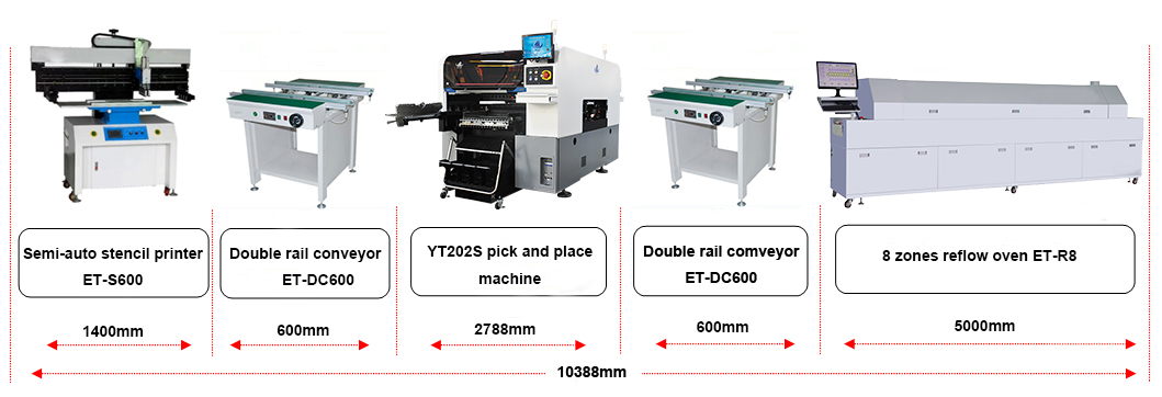 3.Pick and place machine YT202S: Accurately mount surface mount components to fixed positions on the PCB board.