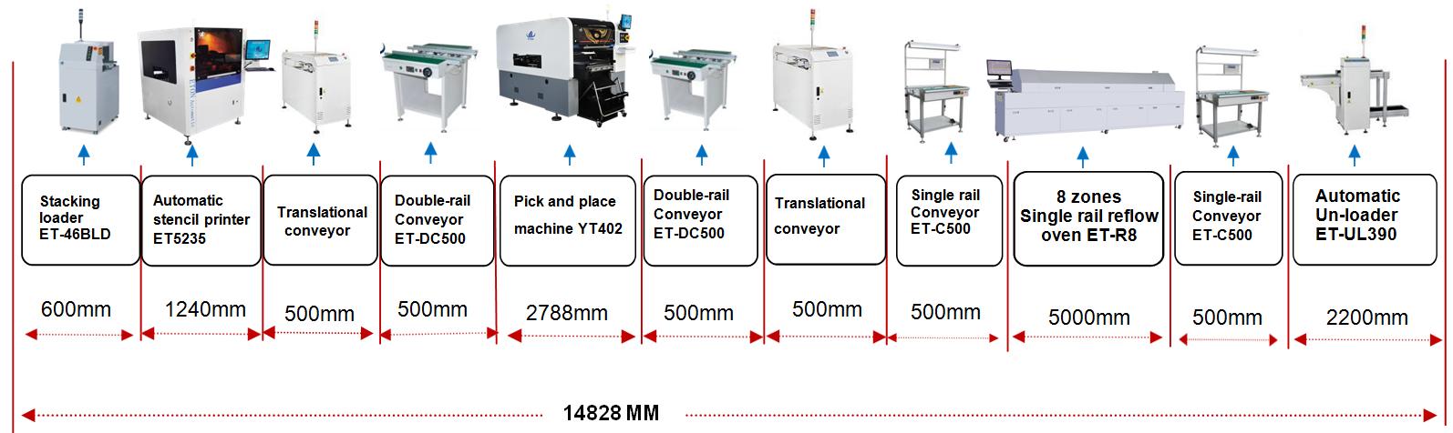 - Smart Double-Head tape feeder: Support YT series double head intelligent electric tape reel feeder, by optically correcting the feeding position of the component, it can achieve stable, accurate and high-speed feeding;