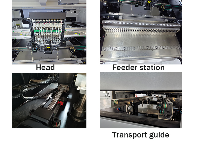 2.Vision system, two sets of camera vision alignment, Mark correction with high precision recognition, the mounting precision is 0.04mm