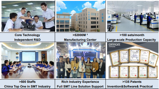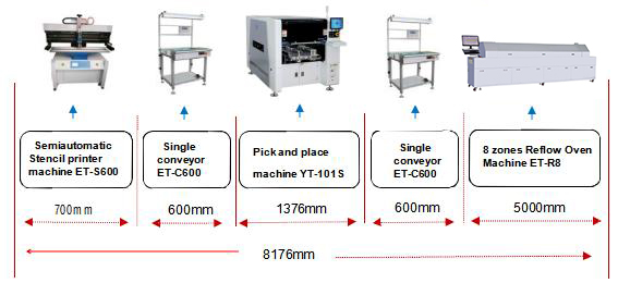 We are the top manufacturer of SMT machine and peripheral equipment in China, and we provide the whole SMT production line solution. For the Semi-automatic production line, it includes semi-automatic stencil printer, pick and place machine, conveyor and reflow oven.